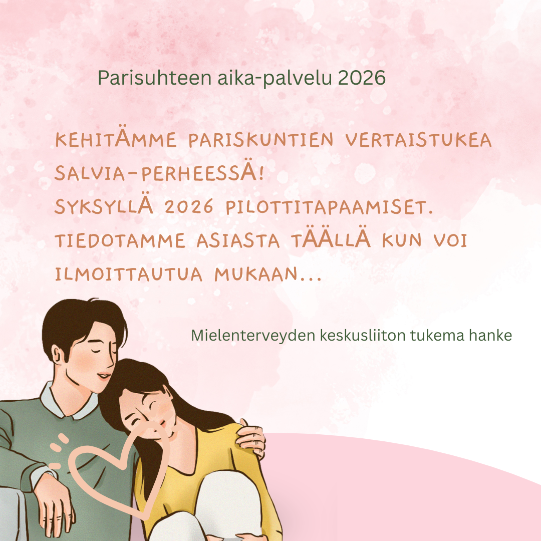 Olette tervetulleita myös nimettömänä jakamaan kokemuksenne ja tarinanne podcastiin. Ota siis yhteyttä salviaperhe@gmail.com