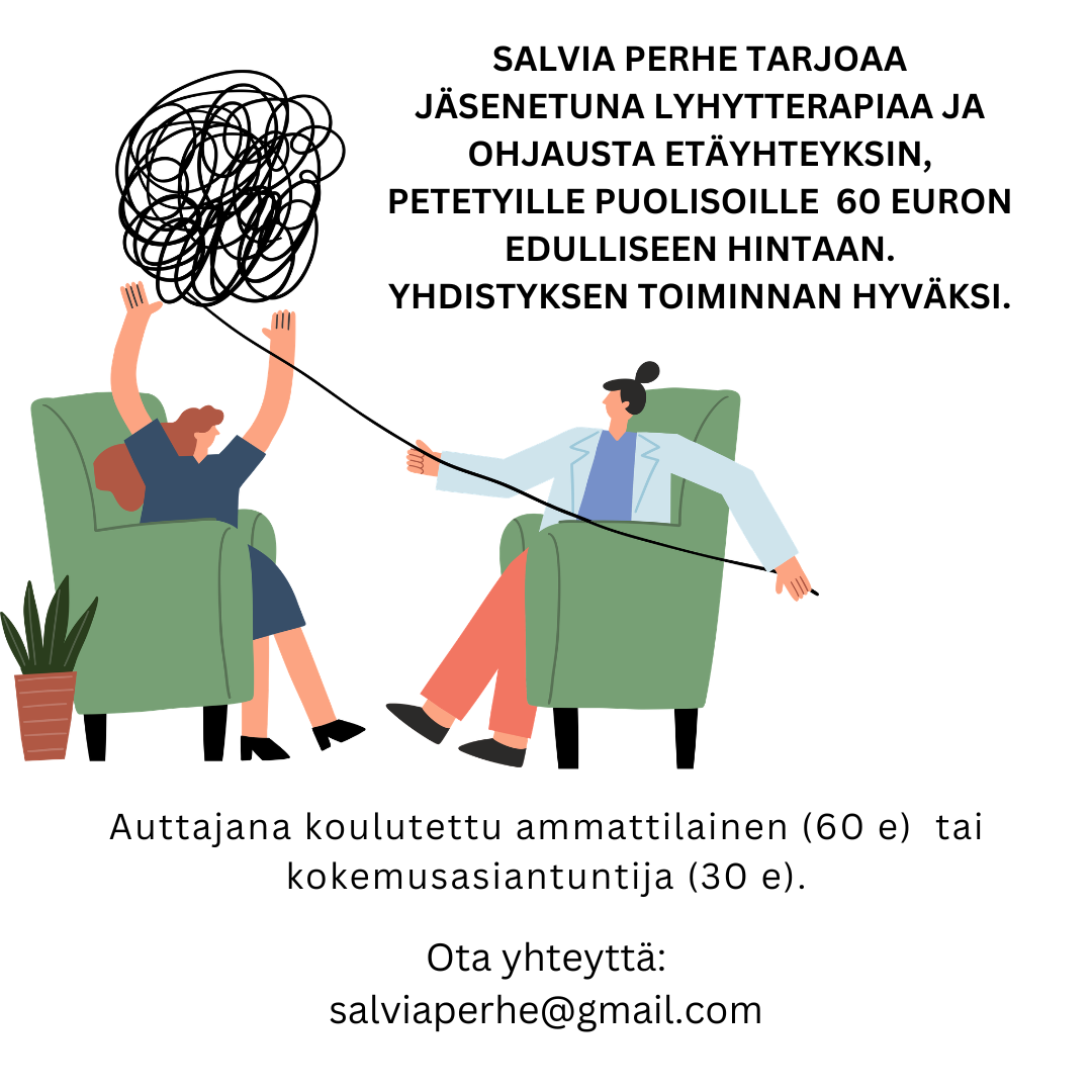 4. Lyhytterapiaa ja ohjausta jäsenyyden omaaville. Tämä tukipalvelu on maksullista.